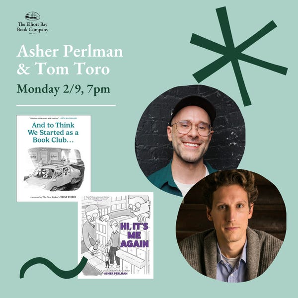 My friend and fellow New Yorker cartoonist Tom Toro and I are having a book signing and conversation in my hometown. Tickets are free, but you need to reserve a spot here. Come say hello.